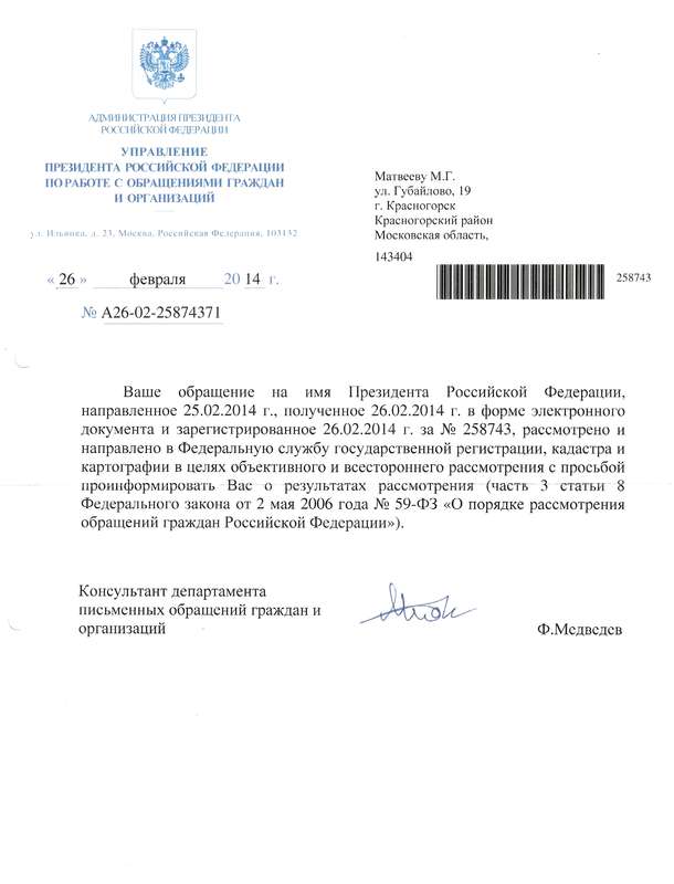 Сегодня получил ответ от старшего государственного административно-технического инспектора территориального отдела No.29 господина С.Г. Бизяева.